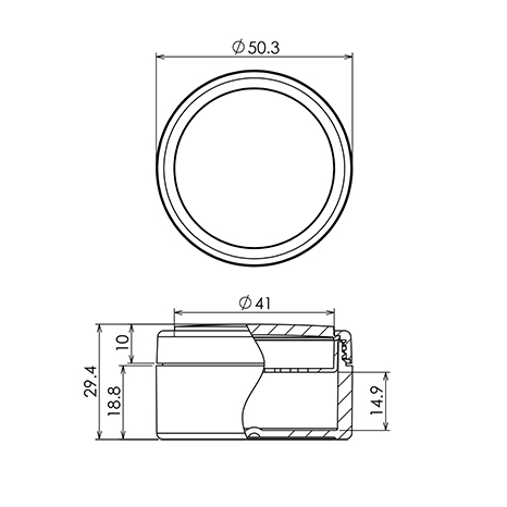 Capacity D.(mm) H.(mm) OFC / ml 43.1 22.6 32.9 Base w/o sifter 41 14.5 19.5 Base w/ sifter - Materials