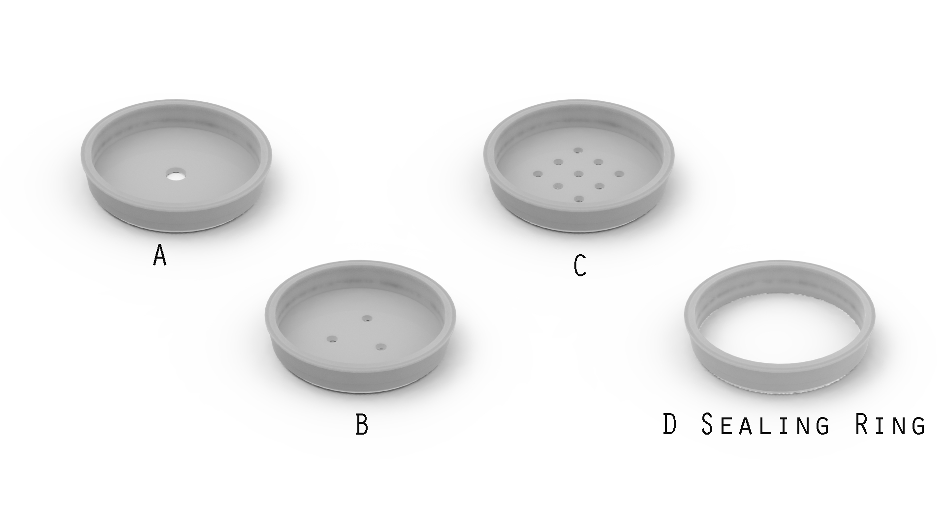 Capacity D.(mm) H.(mm) OFC / ml 31.3 15.2 11.6 Base w/o sifter 31.3 9.6 7.3 Base w/ sifter - Materials