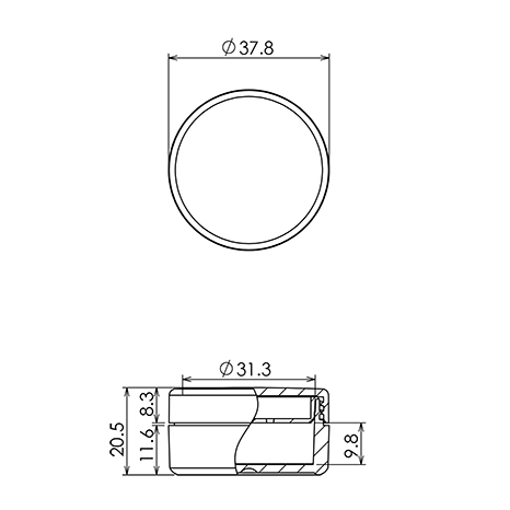 Capacity D.(mm) H.(mm) OFC / ml 31.3 15.4 11.8 Base w/o sifter 31.3 9.8 7.5 Base w/ sifter - Materials