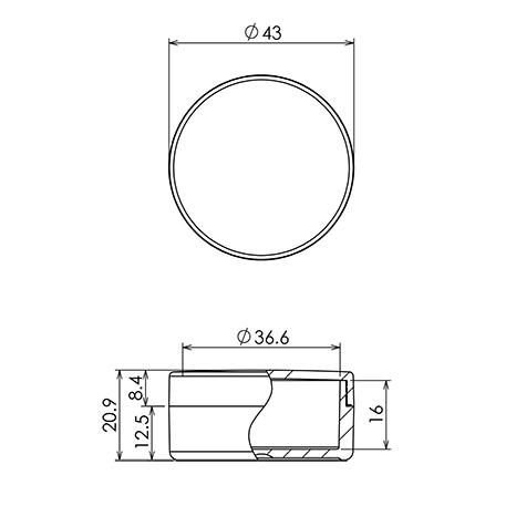 Capacity D.(mm) H.(mm) OFC / ml 36.6 16 16.8 Base w/o sifter 36.6 9 9.4 Base w/ sifter - Materials