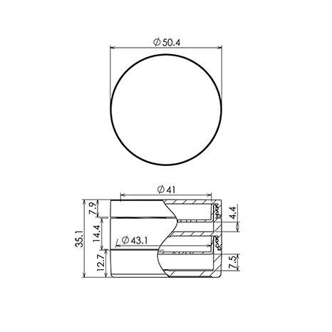 Capacity D.(mm) H.(mm) OFC / ml 41 12.2 17.7 Tier w/o sifter 41 4.4 5.1 Tier w/ sifter 43.1 15.3 22.3 Base w/o sifter 43.1 7.5 10.9 Base w/ sifter - Materials