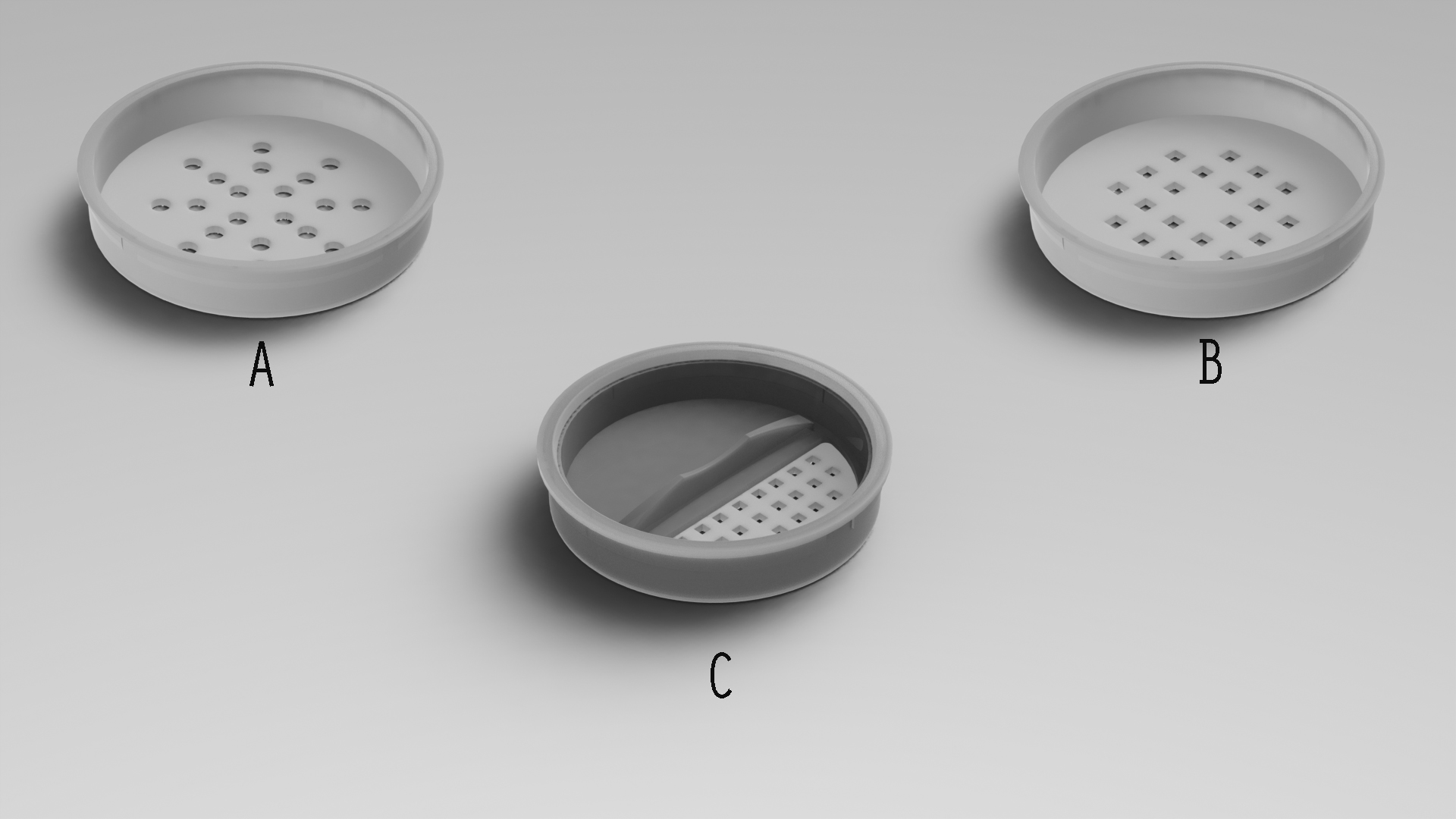 Capacity D.(mm) H.(mm) OFC / ml 43.1 22.6 32.9 Base w/o sifter 41 14.5 19.5 Base w/ sifter - Materials